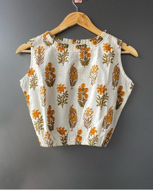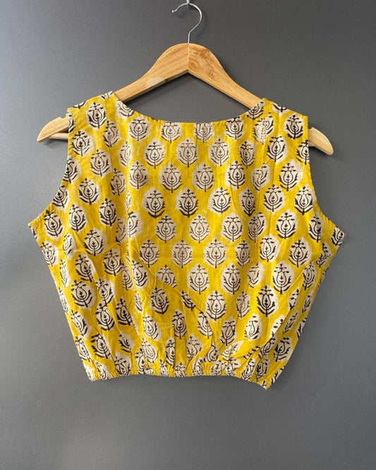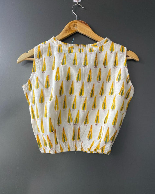 "BALLOON TOP" Mustard yellow Block Printed