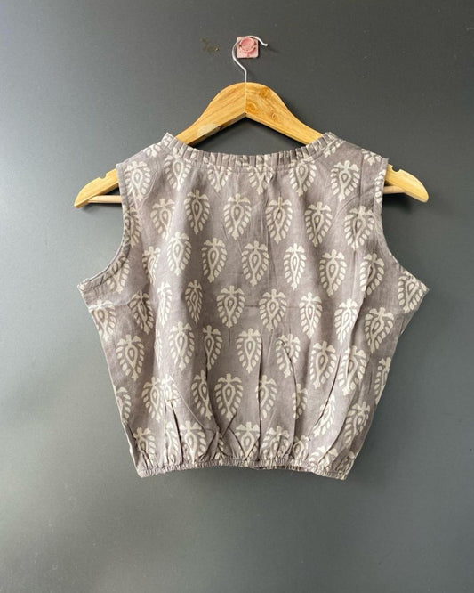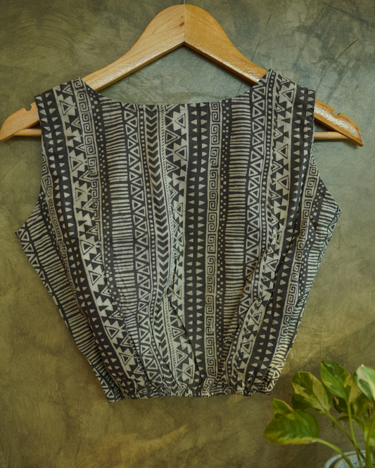 "BALLOON TOP" Dark Grey Dabu Hand Block Printed