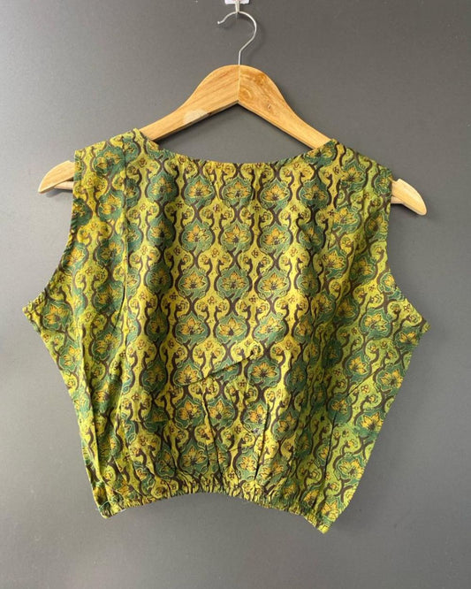 "BALLOON TOP" Green Block Printed