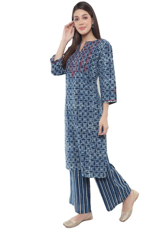 "EMBROIDERY"Butterfly Hand Block Printed Indigo Kurti