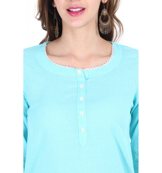 Pastel Green Floral Hand Block Printed lace Kurti