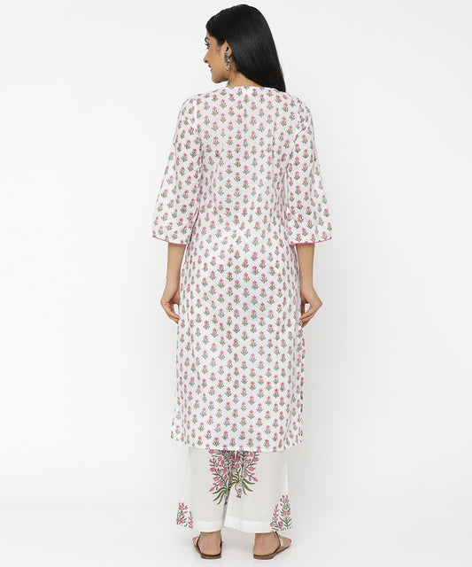 Pink Floral Hand Block Printed Kurti -