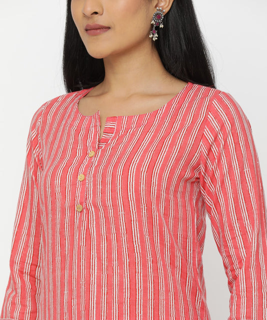 Peach Stripes Hand Block Printed Kurti