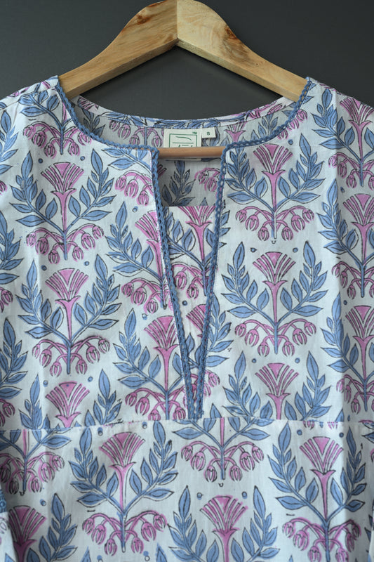 "CHAMPA"Floral Hand Block Printed Cotton Lace Kurti and pant