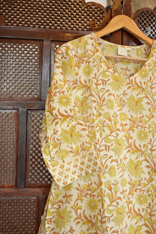 ROOH - YELLOW SOUTH COTTON CURVD -V NECK KURTI