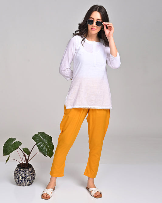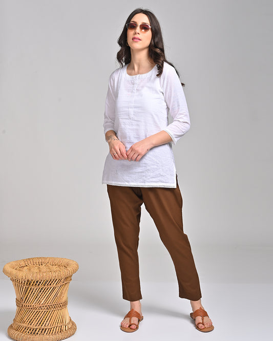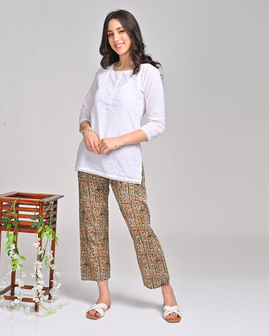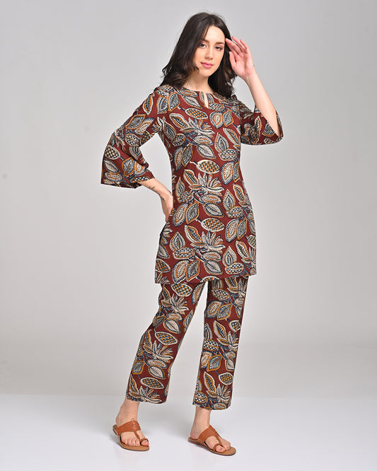 CO-OD SETS BROWN WITH LEAF HANDBLOCK PRINTED STRAIGHT PANT
