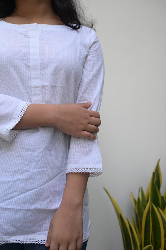 "SHORT TOP" White Kantha printed