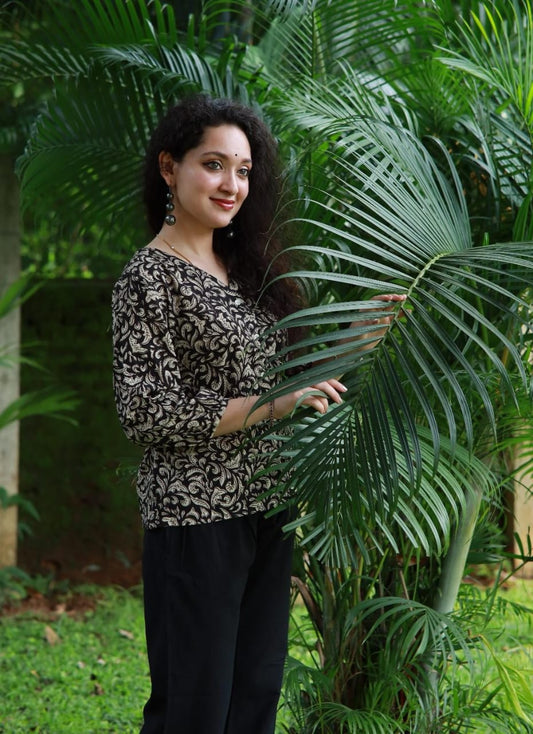 Brown Leaf Hand block printed Printed cotton Relaxed Fit Top