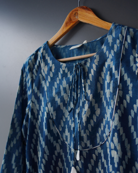 "A LINE DRESS" Indigo Geometric Hand Block Printed